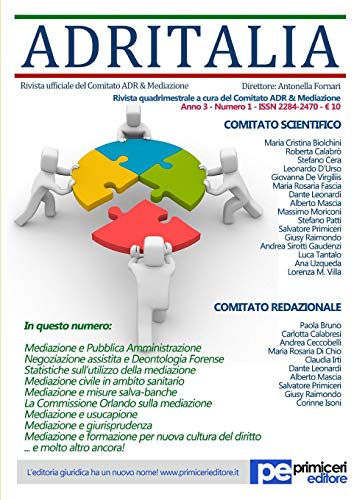 Adritalia Home Facebook ~ ADR Italia – Numero 12019 Versione PDF This entry was posted in Scarica la rivista and tagged adr italia 2019 on luglio 7 2019 by admin E’ uscito il primo numero del 2019 di ADRITALIA rivista scientifica periodica dedicata ai sistemi di risoluzione alternativa delle controversie diretta